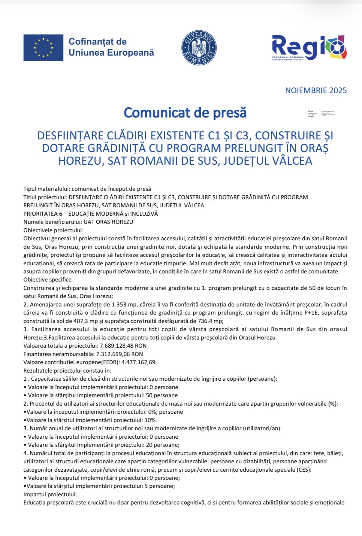 DESFIINȚARE CLĂDIRI EXISTENTE C1 ȘI C3, CONSTRUIRE ȘI DOTARE GRĂDINIȚĂ CU PROGRAM